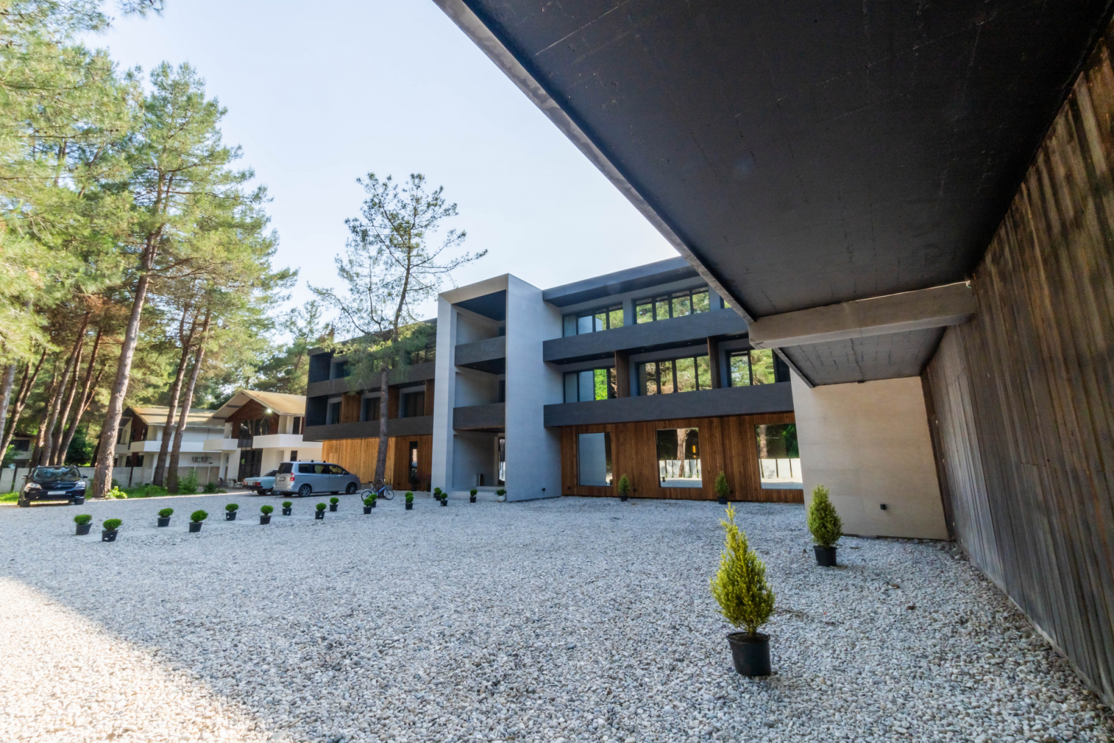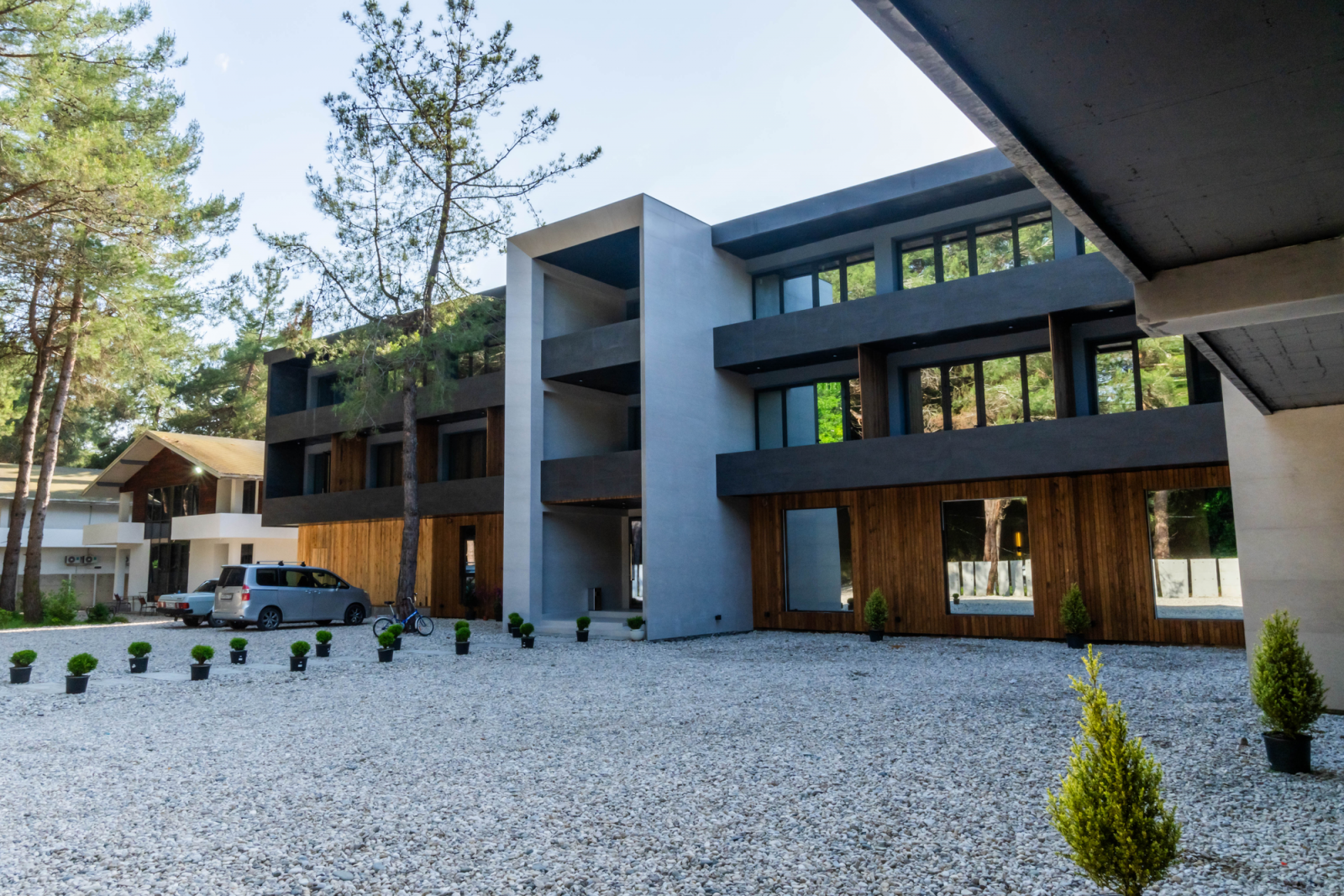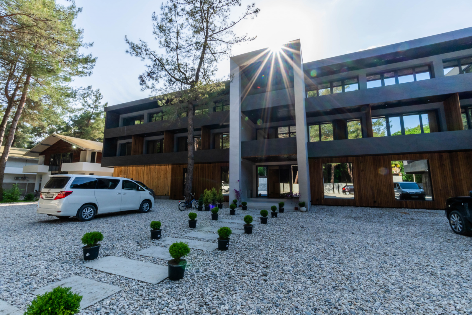 Небольшая новая гостиница расположена в центре г. Пицунда, в живописной местности посреди реликтовой сосновой рощи, дизайн выполнен в стиле хай-тек, в 450 м от берега моря и рядом с КПП ОПК «Пицунда». Отель оснащён всем необходимым для комфортного проживания гостей. **Планируемая дата открытия корпуса 1 июня 2024 г.**