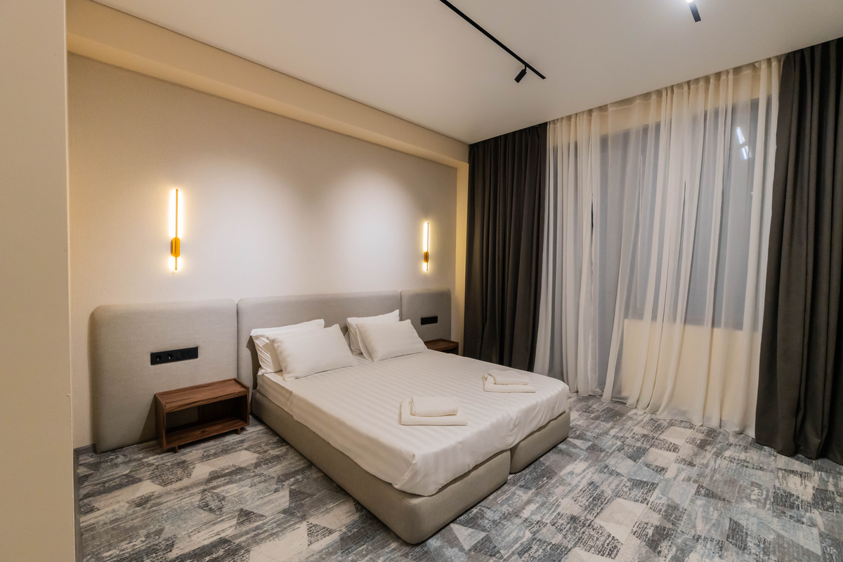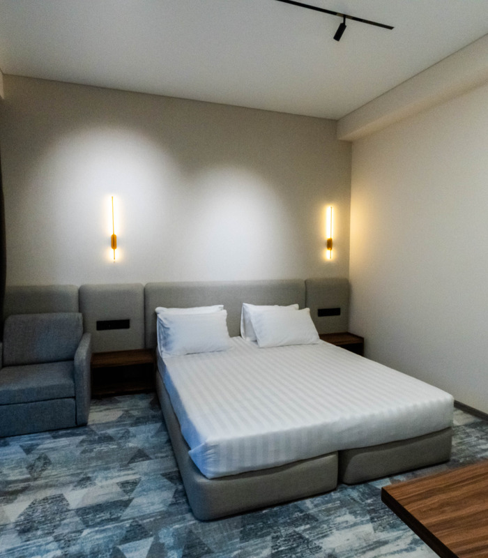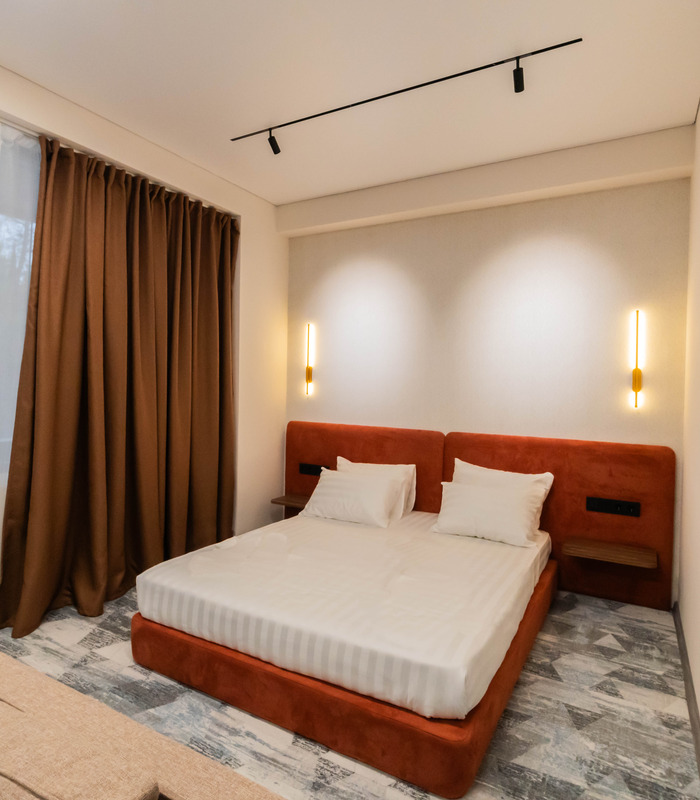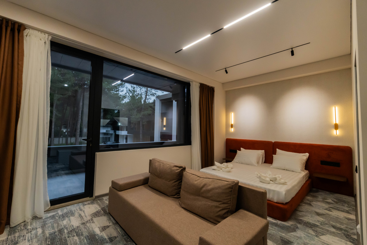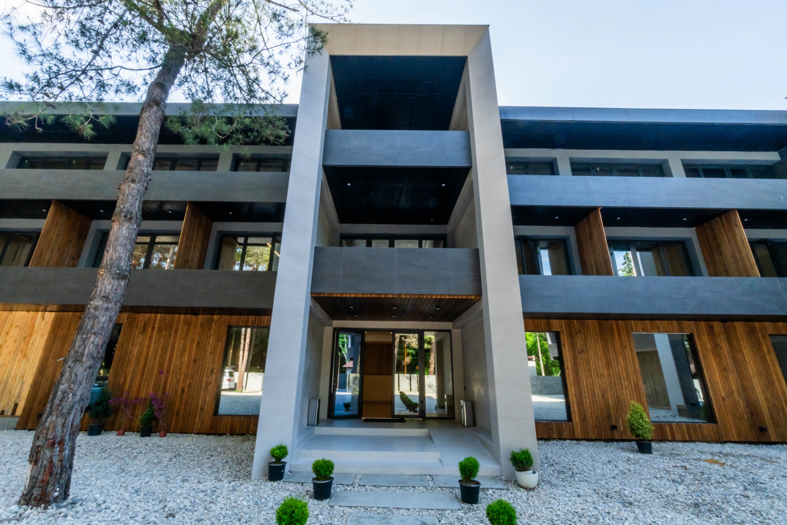 Небольшая новая гостиница расположена в центре г. Пицунда, в живописной местности посреди реликтовой сосновой рощи, дизайн выполнен в стиле хай-тек, в 450 м от берега моря и рядом с КПП ОПК «Пицунда». Отель оснащён всем необходимым для комфортного проживания гостей. **Планируемая дата открытия корпуса 1 июня 2024 г.**